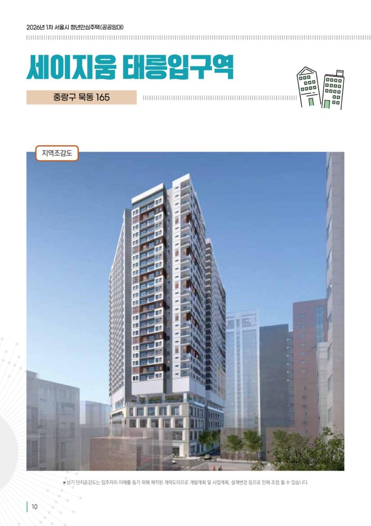 중랑구 묵동의 ‘세이지움 태릉입구역’은 6호선과 7호선 환승역인 태릉입구역 초역세권에 자리 잡고 있습니다. 총 927세대의 대단지 규모로, 이번 공공임대 물량만 무려 381세대에 달하는 이번 공고의 최대어입니다.
