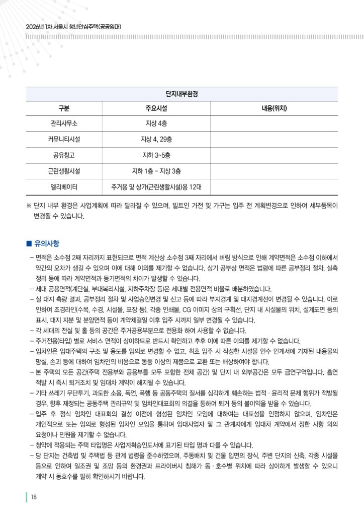 - 18A형 (청년 / 292세대): 이번 공고에서 당첨 확률을 높일 수 있는 최고의 전략 평형입니다. 풀옵션 원룸(에어컨, 냉장고, 세탁기, 인덕션, 전자레인지, 붙박이장)으로 구성되어 있습니다.