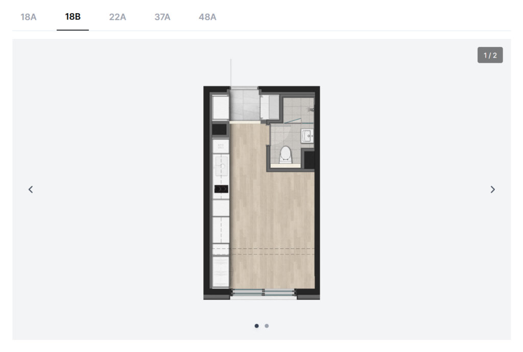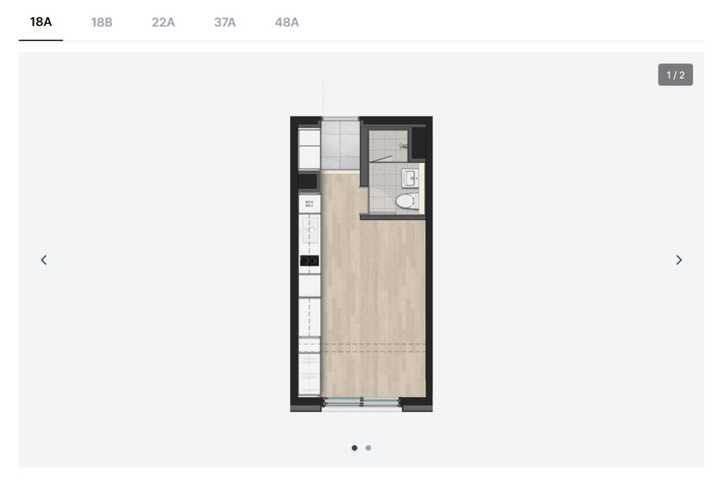 가장 중요한 보증금과 월세 조건입니다. 보증금 비율은 30%, 40%, 50% 중 선택할 수 있어 본인의 자금 상황에 맞게 조절이 가능합니다.
