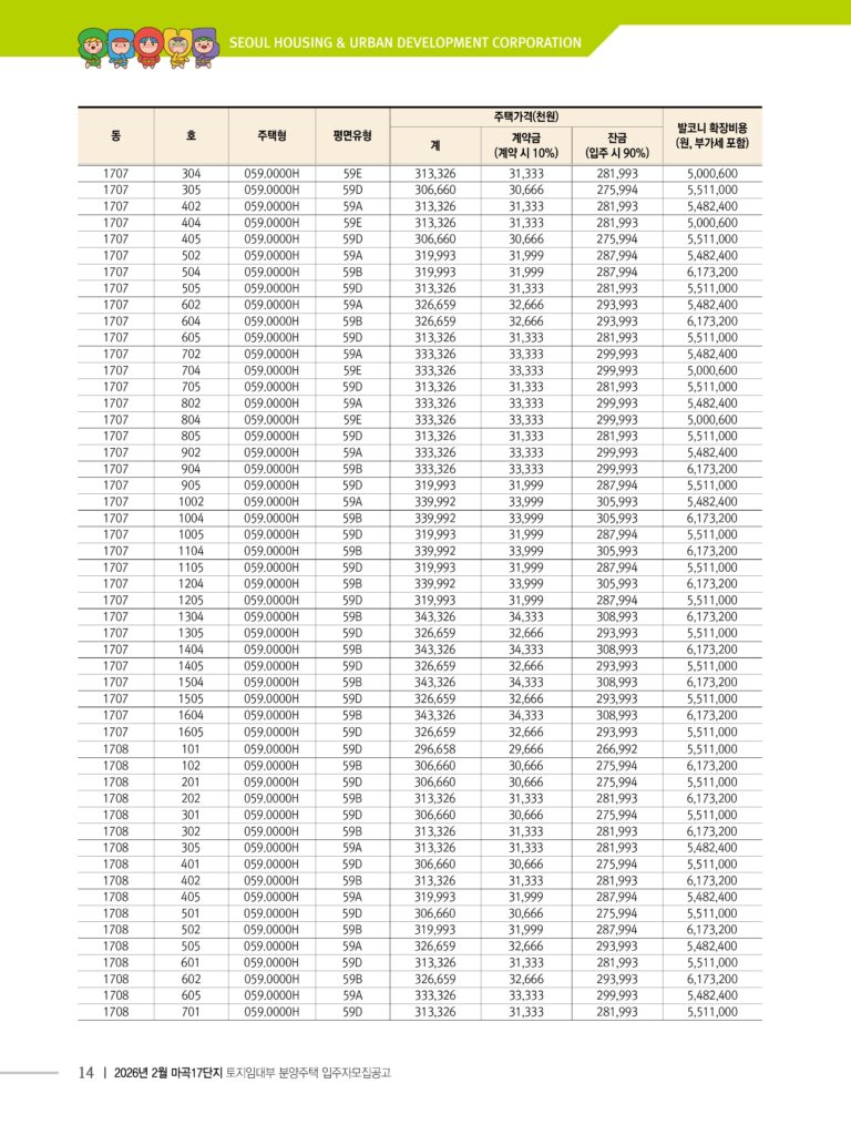 | 단지명 | 마곡지구 17단지 (토지임대부 분양주택) |